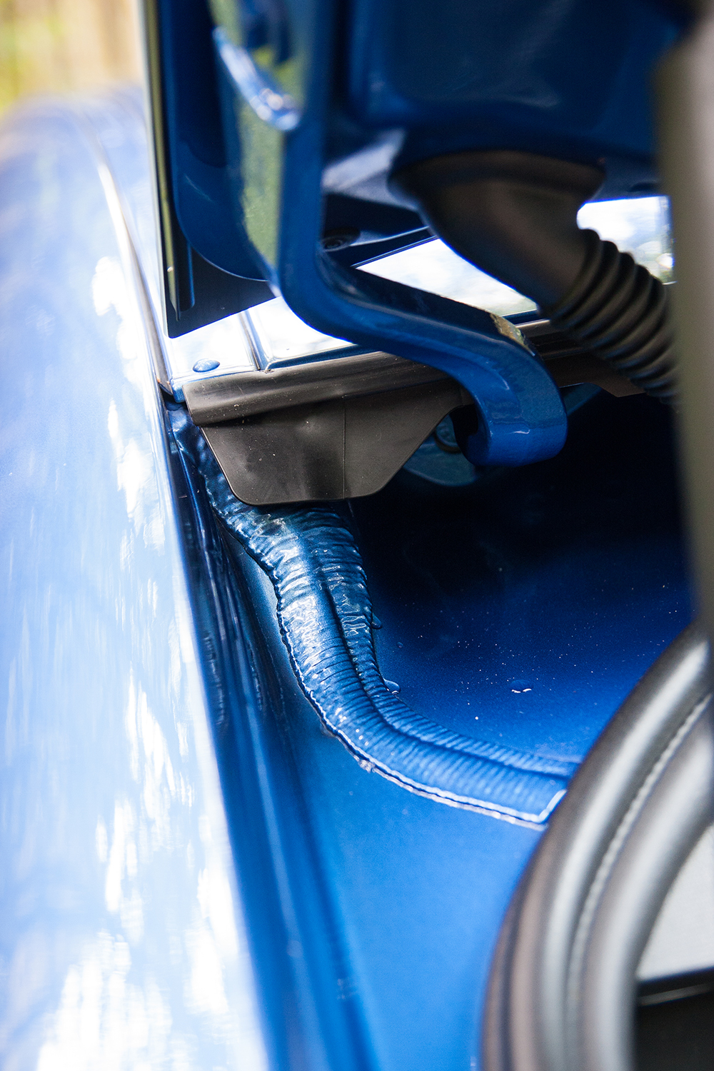 În zone relativ ascunse pot fi zărite îmbinările cu adezivi structurali, mult mai rezistenți la solicitări decât sudura în puncte. Este unul dintre motivele pentru care caroseria lui Gran Coupe nu ”lucrează” la viraje și la trecerea peste denivelări, chiar și cu patru persoane la bord. Verificat!