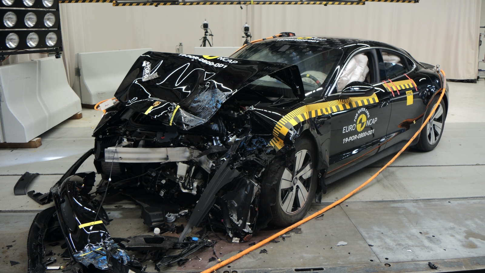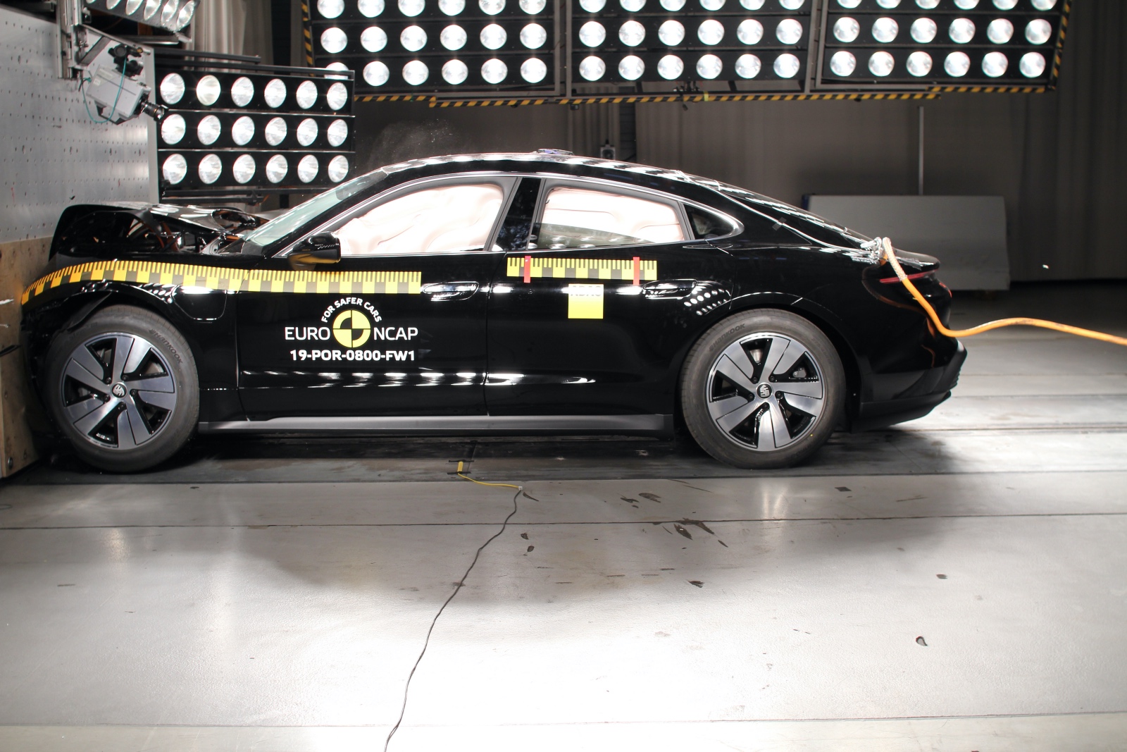 Porsche Taycan a fost și el pus la încercare de către specialiștii EuroNCAP obținând un scor general de cinci stele. Gradul de protecție pentru adulți este de 85%, 83% pentru protecția copiilor, 70% pentru protecția pietonilor și 73% pentru sisteme de siguranță.