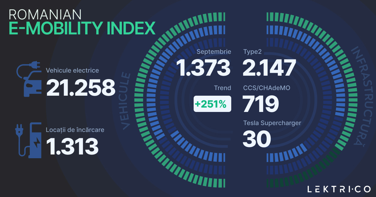 Lektri.co este un producător de stații de încărcare pentru mașinile electrice. Conform indexului publicat de această companie, cea mai bună lună pentru înmatriculările de automobile electrice în România a fost septembrie cu 1373 de unități înmatriculate, o creștere de 250% față de luna septembrie 2021.