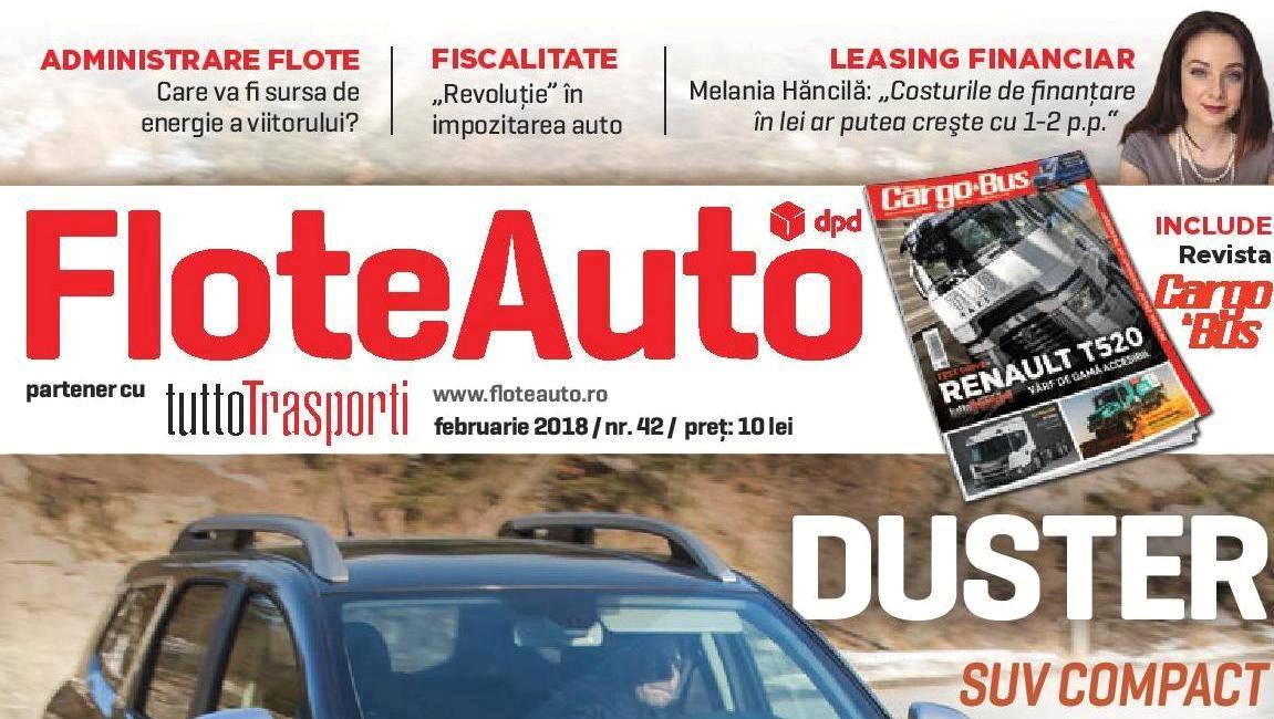 A apărut numărul 42 al revistei FLOTE AUTO, februarie 2018, cu un conţinut care îmbină, ca de obicei, testele şi prezentările de autoturisme şi utilitare, cu articole şi interviuri referitoare la finanţarea, administrarea şi asigurarea flotelor. Începând din această lună, noua revistă CARGO & BUS a grupului Auto Expert Media va fi distribuită împreună cu FLOTE AUTO.