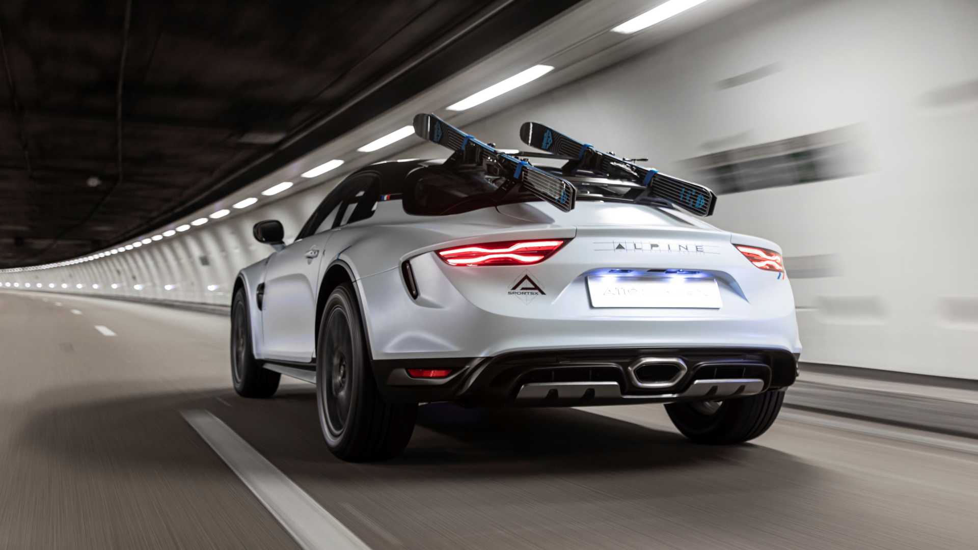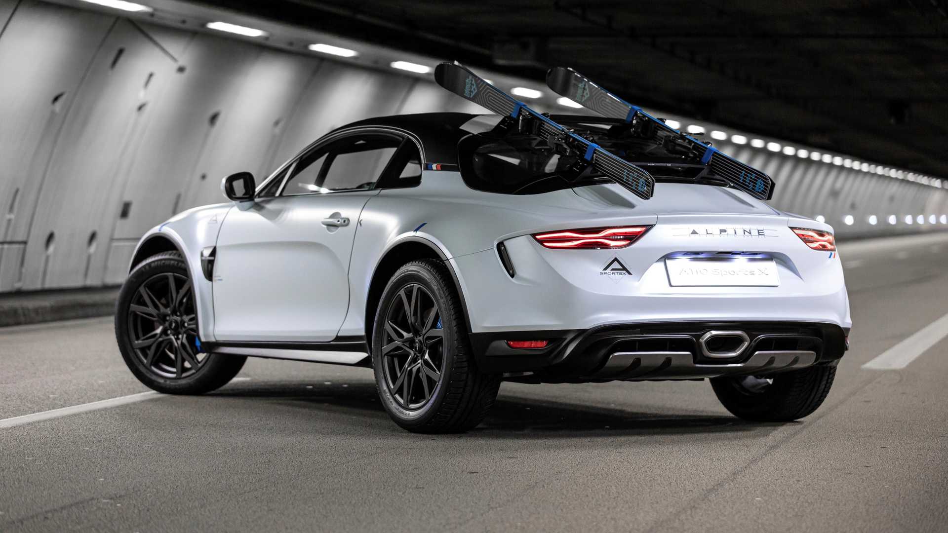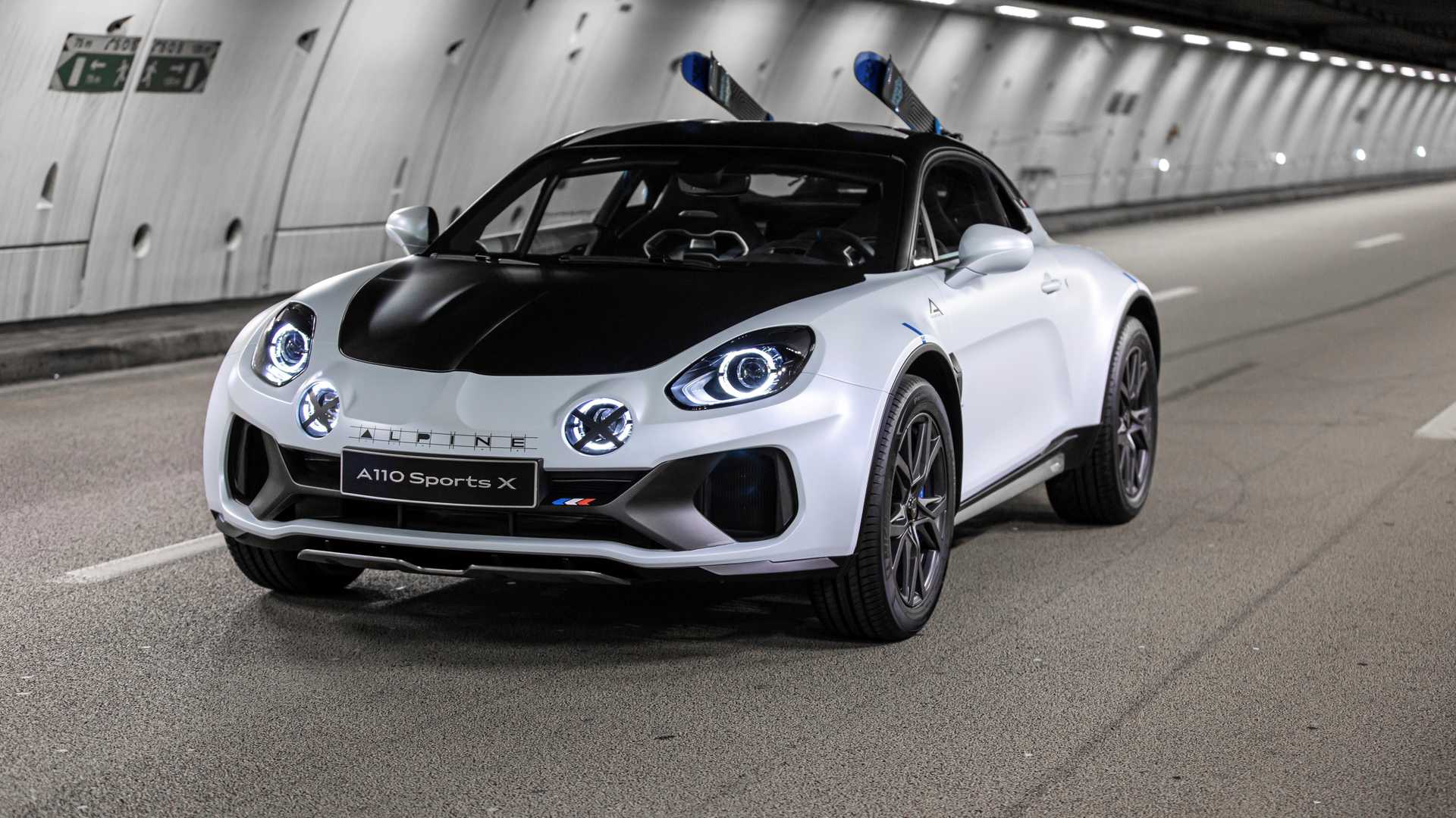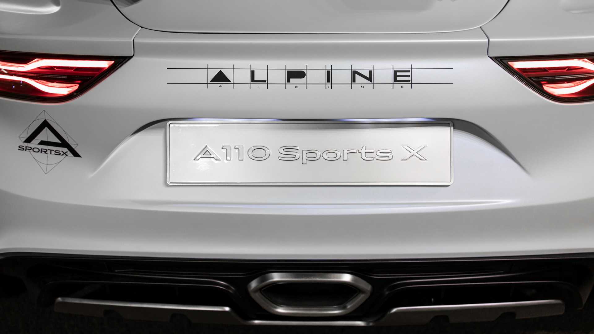 Conceptul A110 SportsX a fost creat de echipele de inginerie și design drept un omagiu direct pentru participările companiei în cursele de raliuri. Mai exact, A110 SportsX este un exercițiu de stil dedicat modelului A110 original care a câștigat în 1973 Raliul Monte Carlo. Compania a utilizat drept bază de pornire versiunea Pure a reîncarnării moderne, principalele modificări fiind mecanice. Astfel, garda la sol a crescut cu 60 de mm, în timp ce caroseria este cu 80 de mm mai lată.