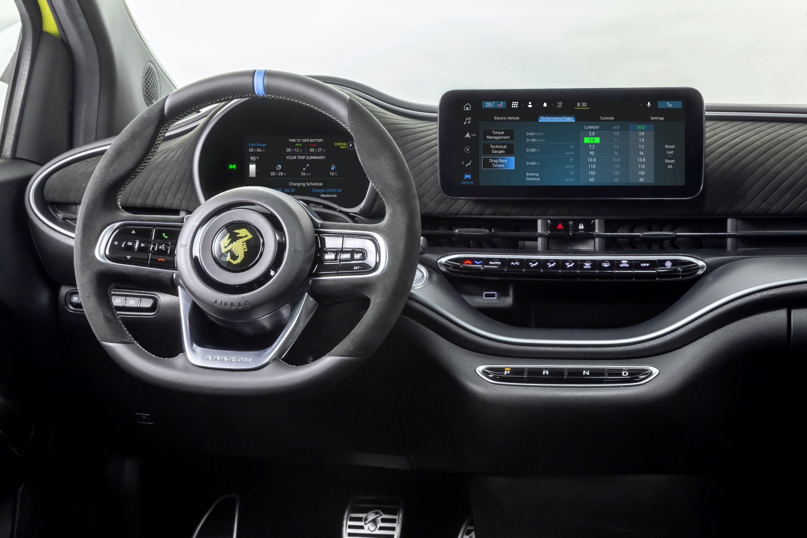 Pentru a păstra sunetul specific modelor Abarth, italienii și-au echipat mașina cu un generator de sunet care poate imita motoarele pe benzină. Acesta poate fi, însă, dezactivat.
