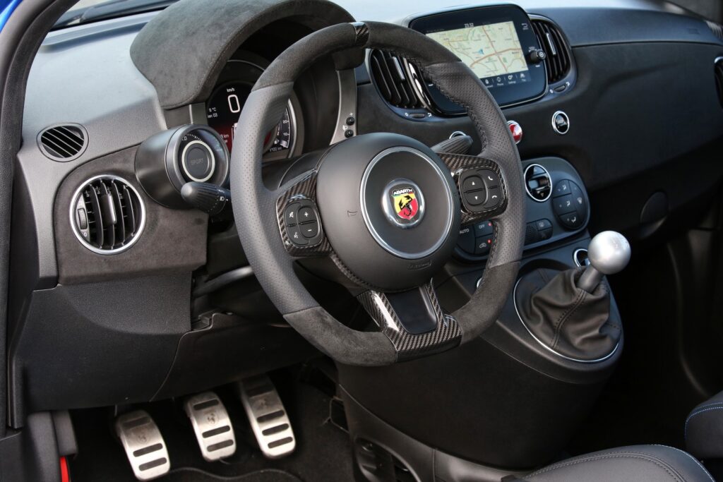 La interior avem planșă de bord îmbrăcată în Alcantara și scaune sport Sabelt.