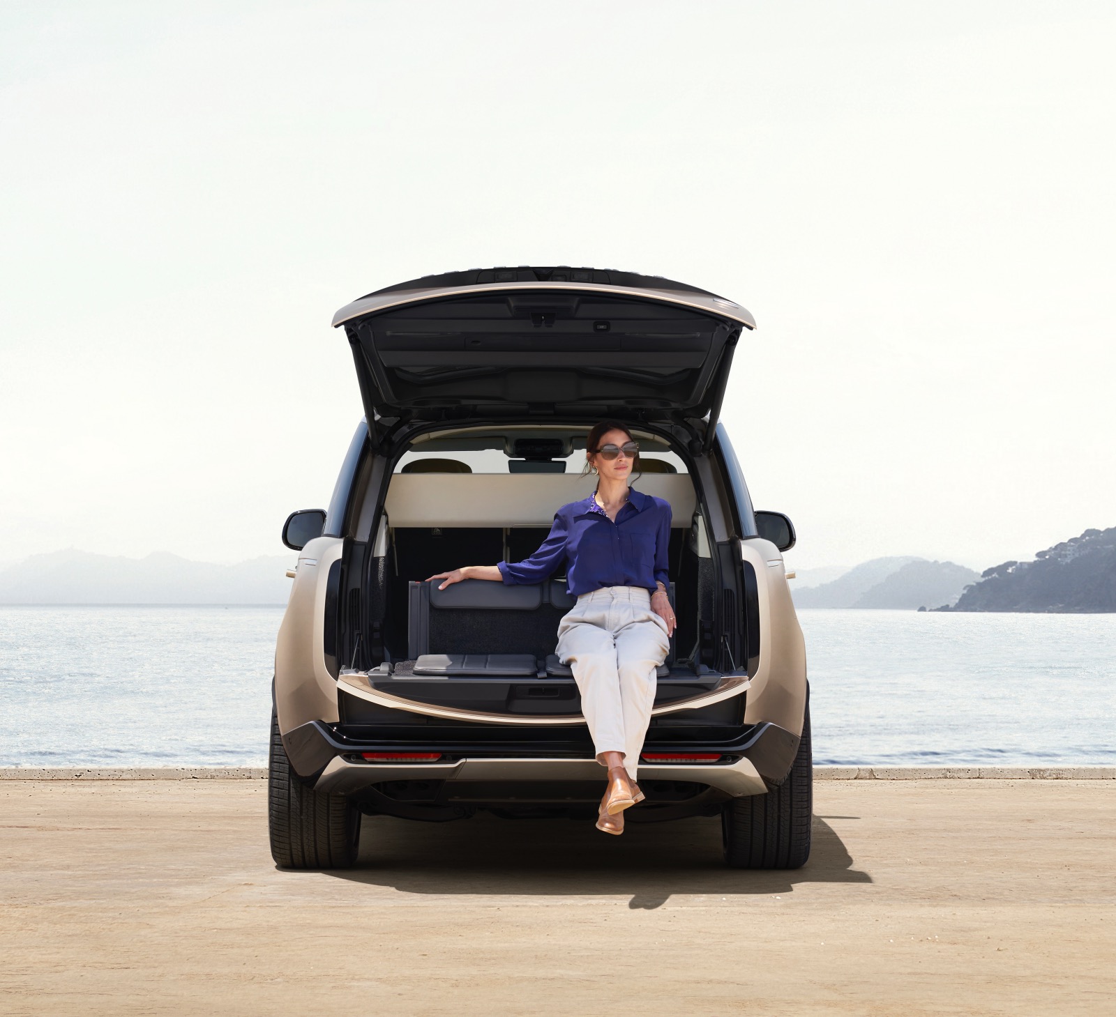 Jumătatea inferioară a hayonului poate coborî, oferind două locuri pentru a admira apusul, ca la Rolls-Royce Cullinan. În premieră, ușile vor putea fi acționate electric.