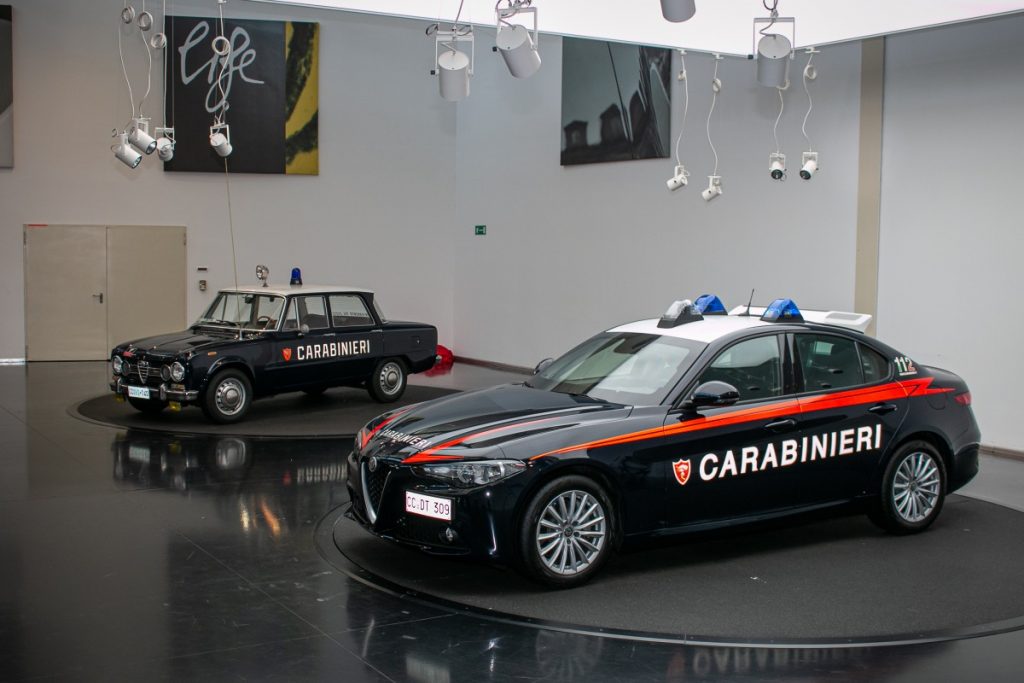 Alfa Romeo este un furnizor de tradiție pentru Poliția Italiană și Carabinieri. Ambele divizii au folosit modelul original Giulia din 1960 ca mașină de intervenție.