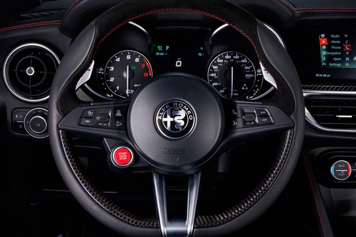 Spre deosebire de Giulia QV, Stelvio QV va fi oferit exclusiv cu tracțiune integrală. Sistemul 4×4 Alfa Romeo, intitulat Q4, transmite în condiții normale 100% din cuplu roților din spate, dar poate varia acest raport până la 50/50% față/spate, dacă puntea posterioară pierde aderența. Diferențialul spate include, de asemenea, funcția de torque vectoring între roțile posterioare. Stelvio QV dispune, de asemenea, de frâne ceramice și suspensie adaptivă Chassis Domain Controller.