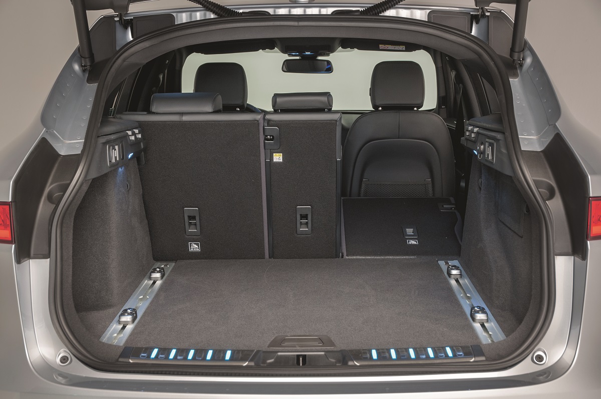 Conform măsurătorilor Quattroruote, Stelvio are un portbagaj puțin mai mare dacă se ia în calcul și spațiul de sub podea. Ambele modele au spătarul banchetei rabatabil 40/20/40%, dar la Jaguar acesta poate fi acționat și electric (156 euro extra).