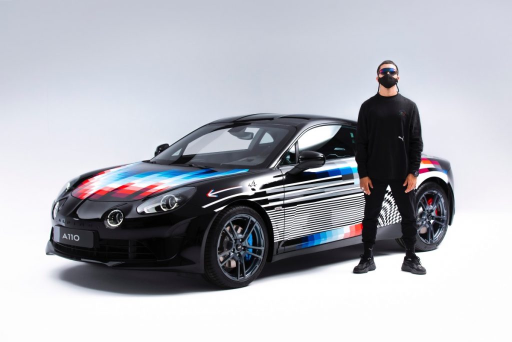Acum, colaborarea a fost extinsă prin crearea unei serii limitate a modelului de serie Alpine 110. Artistul argentinian a creat o schemă de culori specială pentru coupe-ul francez care oferă senzația de viteză chiar și când mașina stă pe loc.