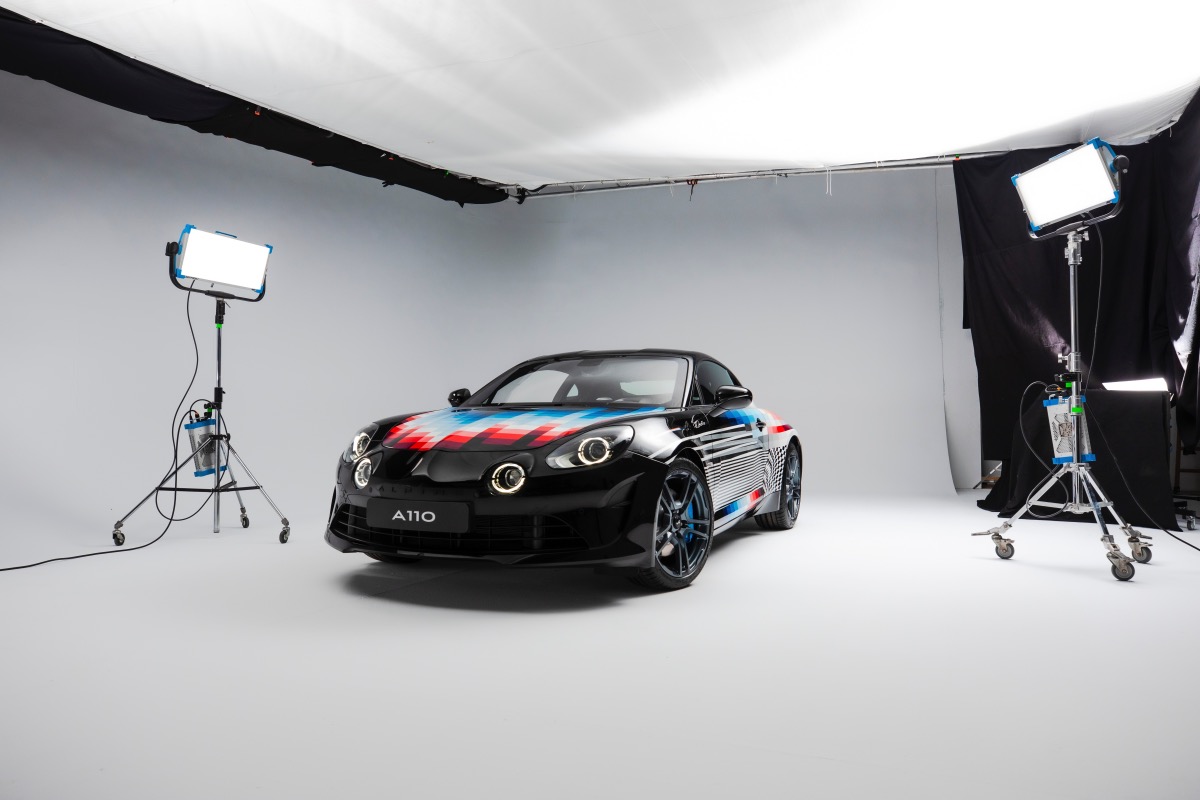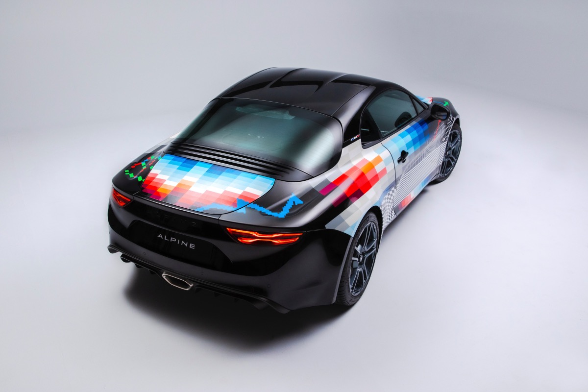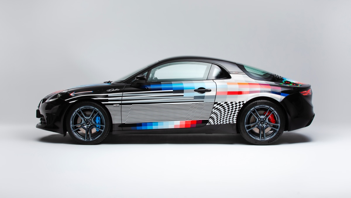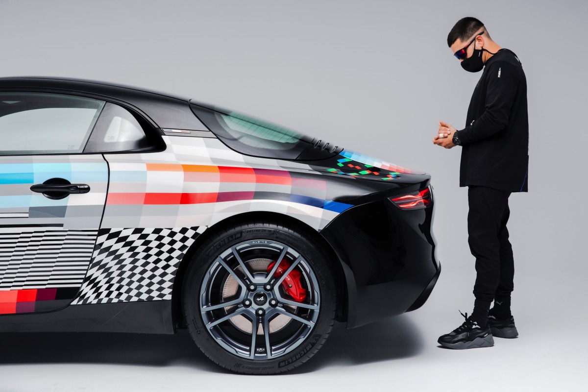 Acum, colaborarea a fost extinsă prin crearea unei serii limitate a modelului de serie Alpine 110. Artistul argentinian a creat o schemă de culori specială pentru coupe-ul francez care oferă senzația de viteză chiar și când mașina stă pe loc.