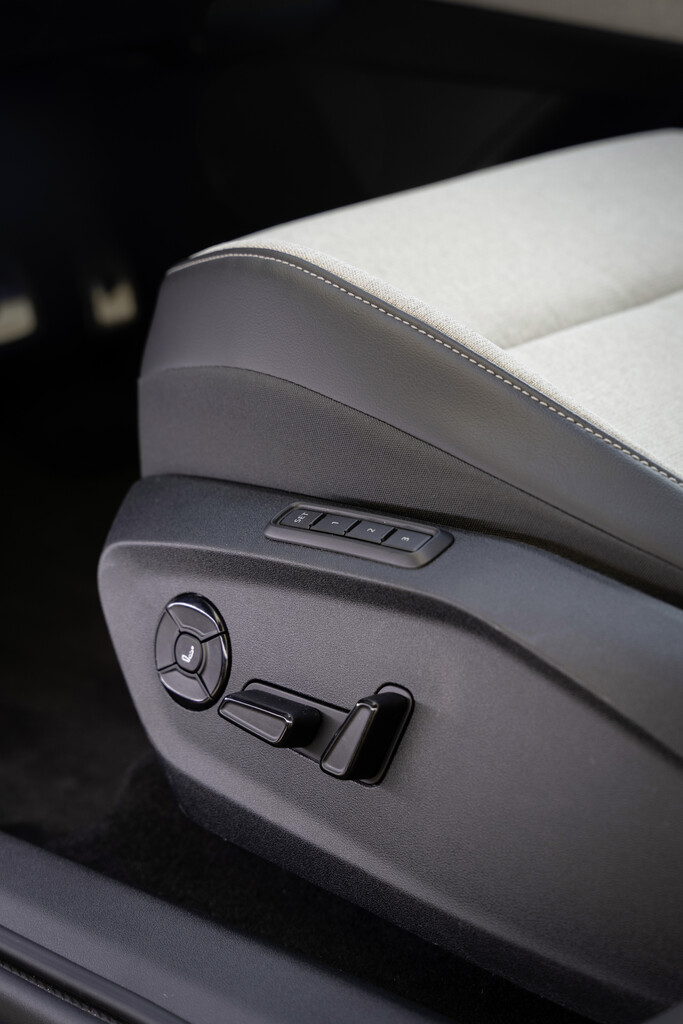 În ceea ce privește caracterul practic, aș menționa și butoanele fizice de pe volan și cele patru comenzi pentru geamuri din ușă, o abatere de la modelele ID. cunoscute până în prezent (care aveau două butoane și un comutator pentru alegerea între geamurile față și spate). Butoanele de climatizare sunt, de asemenea, plăcute la atingere. Totuși, nu există padele pe volan pentru a gestiona frânarea regenerativă, ci poți doar să comuți de la frânarea autoadaptivă în D (în funcție de trafic și de condițiile de drum) la frânarea cu o singură pedală, atunci când intri în modul B, folosind selectorul de pe coloana de direcție.