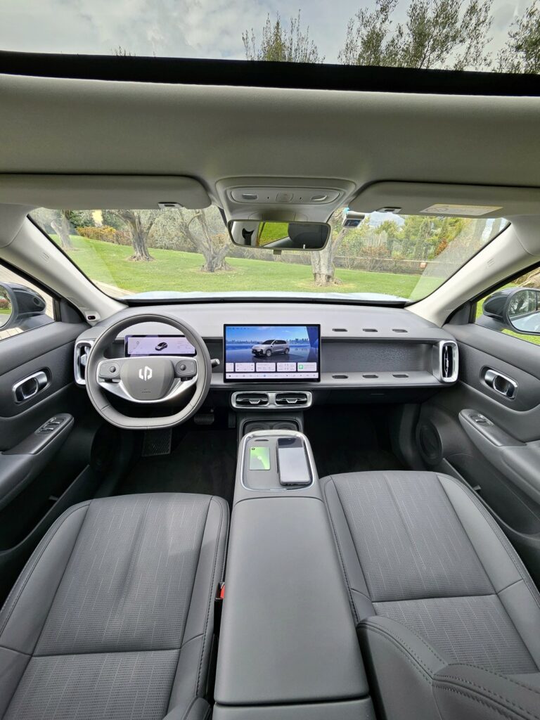 La interior, găsim aceeași planșă de bord minimalistă și finisajele de foarte bună calitate. În continuare, întregul spectru de funcții este operat cu ajutorul ecranului tactil de 14,6 inchi cu rezoluție 2,5K. Amintim că în spatele acestuia rulează sistemul Leap OS 4.0, iar în urma unui update OTA, B10 a primit suport nativ pentru conexiunile Apple CarPlay și Android Auto.