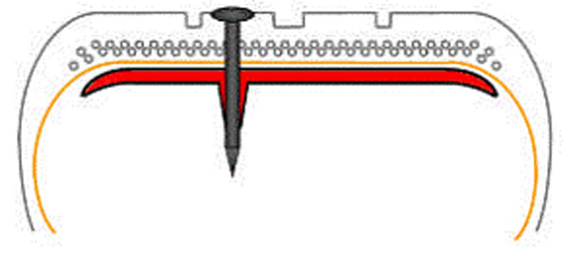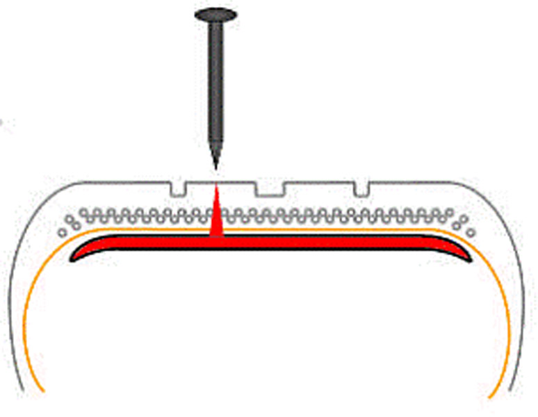 Stratul de etansare umple gaura formata de cui chiar si atunci cand acesta este eliminat, nepermitand pierderea presiunii din interiorul anvelopei.