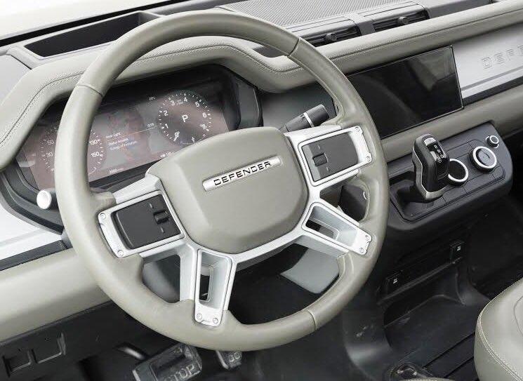 Se vor regăsi la bordul viitorului Land Rover Defender un instrumentar de bord complet digital, un selector de trepte nou, amplasat în consola centrală, dar un nou ecran multimedia. Fotografia care a ajuns pe internet arată volanul multifuncțional cu patru spițe și formă tipică brand-ului, care poartă logo-ul modelului.