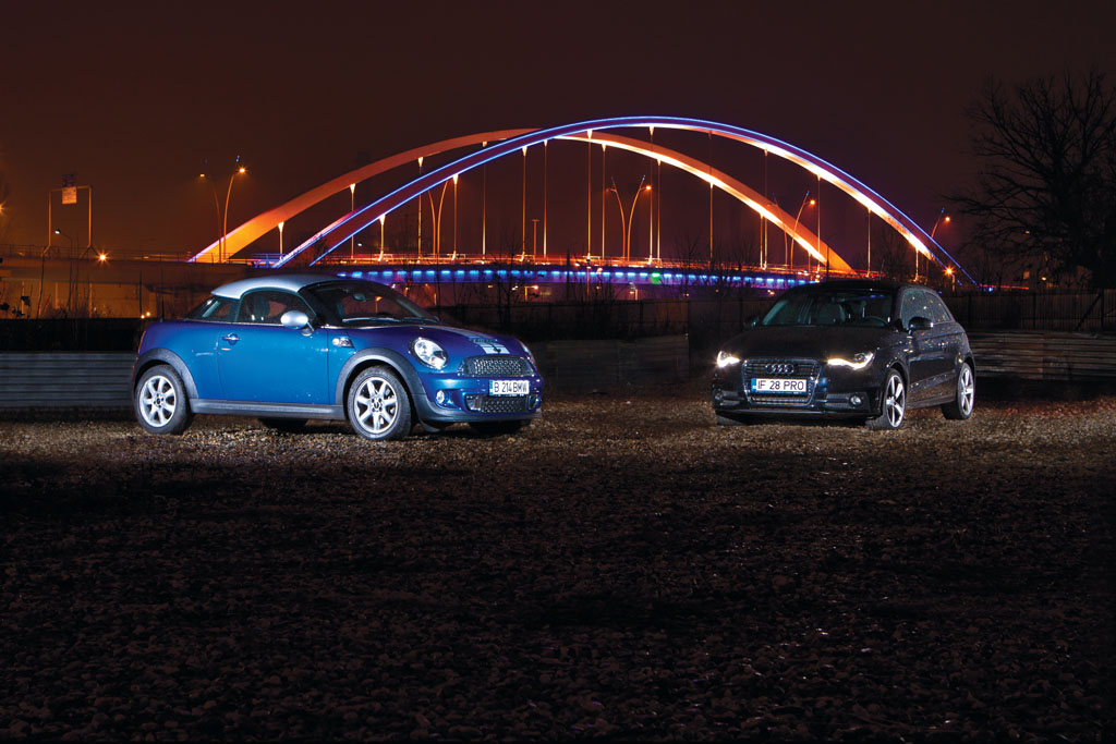Într-un “duel” stradal, cei doi protagoniști sunt asemeni personajelor dintr-un joc de-a șoarecele și pisica; sau mai corect spus, judecând după gabaritele cvasiegale, un joc de-a câinele și pisica. Un „Pif și Hercule” modern, unde fiecare este pe rând atât Pif, cât și Hercule. Și asta pentru că fiecare plusează pe rând la câte un capitol, imaginea finală fiind reprezentată de o alternanță a punctelor forte între cele două modele. MINI pare totodată că reușește să-și însușească mai bine caracteristica de „băiat rău” în comparativul nostru, pentru că este mai dintr-o bucată decât A1, mai necizelat (în sensul bun). Asta până când apelezi la modul S al transmisiei S Tronic de pe Audi, dar asta este o discuție la care vom reveni imediat.