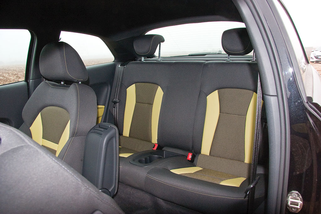 Ca într-o gală de contact veritabilă, începem prezentarea combatanților, primul la apel fiind colțul albastru reprezentat de MINI Coupe S. Poate nu este cea mai inspirată culoare, dar acest model este cu siguranță o apariție! Iar argumentele personale au fost completate de mulțimea (efectiv) de capete pe care le întorcea simpaticul burghez englez pe stradă. Cu literă de lege design-ul tipic MINI, Coupe S este genul de mașină egoistă, care nu asigură decât două locuri. În contrapartidă, în spatele scaunelor se găsește un spațiu de depozitare, care completează portbagajul și așa surprinzător de generos (280 l). Vizibilitatea este o problemă reală, dar e o chestiune pe care ți-o asumi în momentul în care optezi pentru un model ce poate fi catalogat drept excentric.
