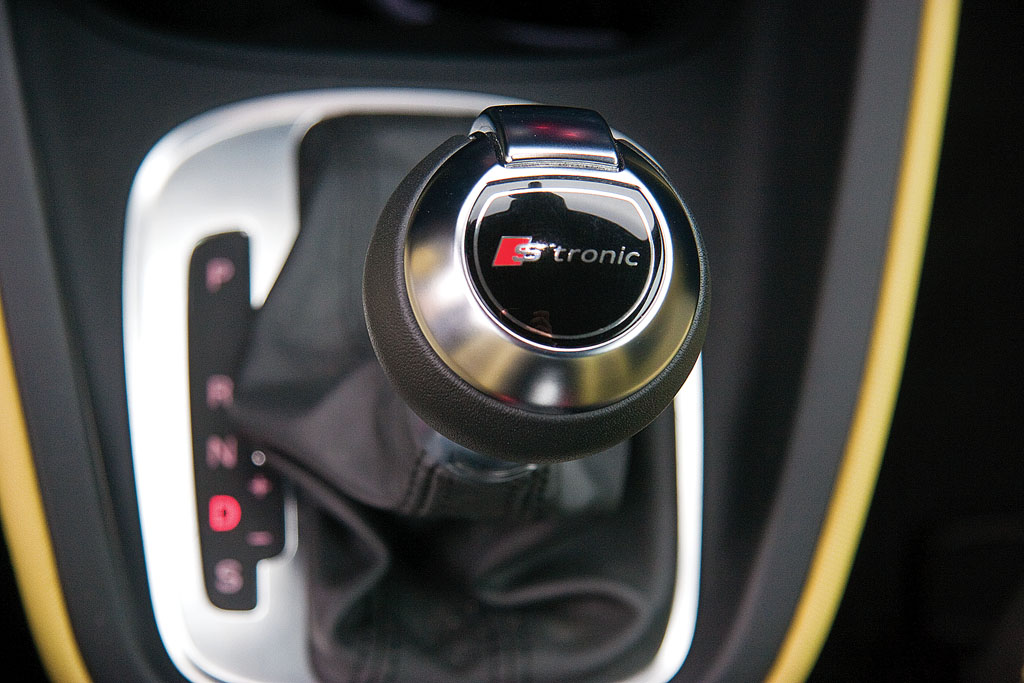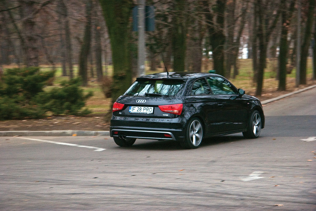 Motorul TFSI, care și-a dat examenul de maturitate pe Polo GTI și pe Fabia RS este încântător. Atâta putere (185 CP) și atât cuplu (250 Nm) dintr-o unitate de capacitatea celor care au echipat celebrele Dacii 1410. Ajungem la partea cu care vă amenințasem anterior, unde intră hotărâtă în scenă transmisia cu dublu ambreiaj S Tronic etajată foarte rațional. Cu un timp de răspuns mic și cu o funcționare foarte lină, este o bucurie pentru șofer. Iar senzația se amplifică atunci când treci selectorul pe poziția S. Pragul de schimbare a treptelor urcă, într-atât încât să auzi sunetul grav al motorului de după 3.000 rpm. 1,4 litri ai zis? Sigur? Reprizele astea și sunetul încântător, doar dintr-atât? Da și da! Și ca să vezi, valoarea consumului de combustibil nu sare calul, ba din contra. Deși a pășit timid la început, cu al său aspect ultraliniștit, Audi prinde curaj și încântă cu fiecare km adăugat pe bord.