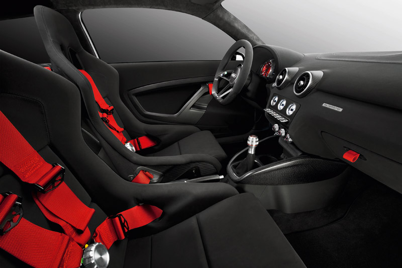 In interior bancheta a fost eliminata, lasand loc unor traverse de rigidizare si a unor spatii de stocare dedicate castilor de competitie. Cum Audi nu are in plan producerea acestui model in serie, cei interesati se pot bucura de A1 clubsport quattro doar in plan virtual pe www.needforspeed.com, in cadrul jocului gratuit online.