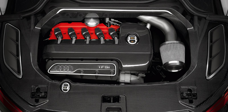 Construit pe principii derivate din motorsport, Audi A1 clubsport quattro ascunde sub capota cunoscutul propulsor turbo cu cinci cilindri in linie, prezent actualmente pe TT RS si RS3. Gratie unor modificari extensive puterea maxima ajunge la 503 CP, iar cuplul la 660 Nm. Evacuarea a fost montata, ca si in cazul modelului A4 de DTM, in lateral pe partea stanga inainte de roata spate.