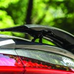 La depășiri, cei 620 Nm fixează pasagerii în scaune, iar cutia schimbă lin, la peste 4.000 rpm, creând cea mai autentică senzație de Gran Turismo, care se păstrează la cote maxime și pe drumurile virajate. Cuplez modul dynamic, volanul scade raportul de demultiplicare de la 16,5 la 9,5:1, puntea spate direcțională desenează perfect traiectoria, iar eleronul spate amovibil (se ridică automat la 120 km/h sau manual, la apăsarea unui buton) adaugă o apăsare aerodinamică de 50 kg pe putea spate.