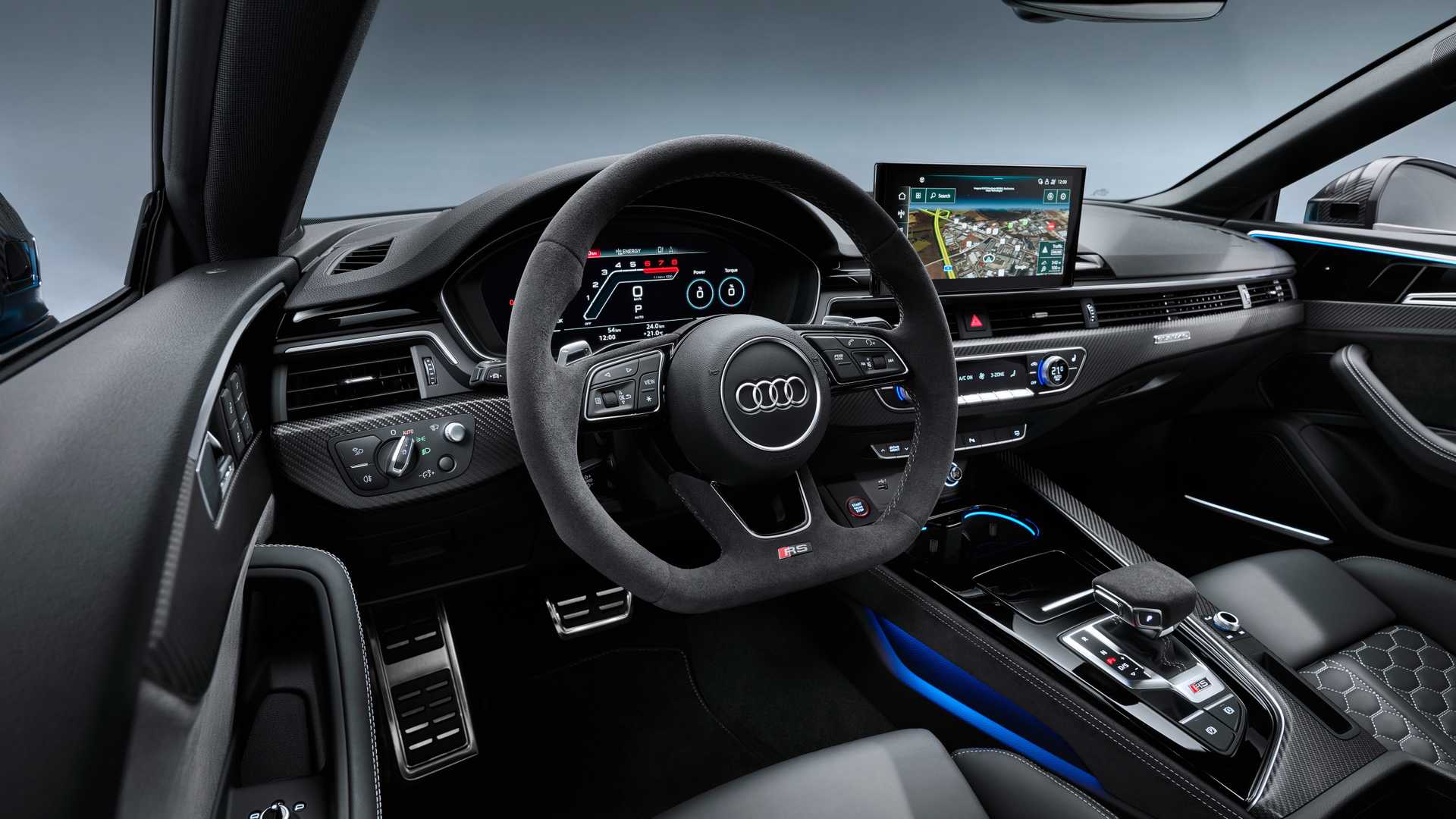 Interiorul primește o multitudine de elemente RS, ca de obicei. Iar RS 5 Coupé și Sportback trec și ele la sistemul MMI cu ecran tactil și diagonală de 10,1 inch. Bonus, pentru MMI navigation plus apar și o serie specială de date de performanță – iar Audi virtual cockpit (12,3 inch) are propriul mod RS performance. Nimic de adăugat la capitolul performanțe. V6-le TFSI de 2,9 litri rămâne la 450 CP și 600 Nm. Suficient pentru a sprinta de la 0 la 100 km/h în 3,9 secunde și pentru a atinge 280 km/h.
