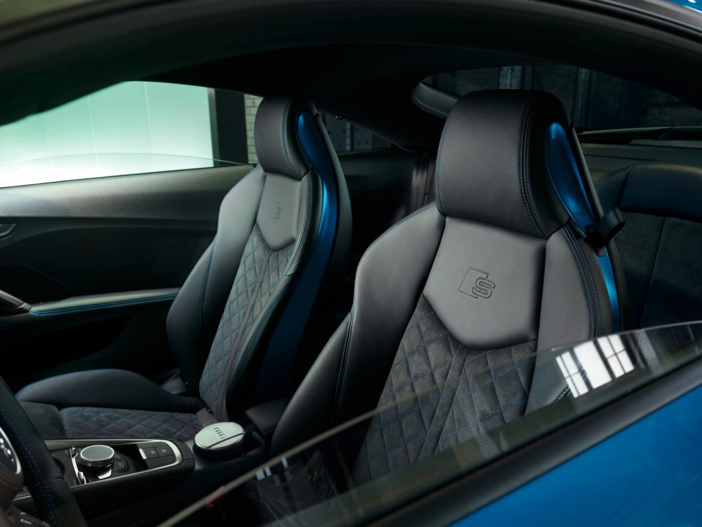 La interior versiunea TT S Line Competition Plus primește elemente îmbrăcate în Alcantara și instrumentar de bord digital.
