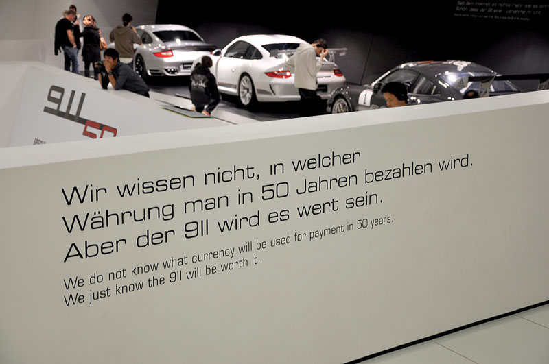 Parcă și el știa că ritmul cardiac creștea invers proporțional cu distanța până la punctul terminus. Coborâm cuminței o colină din Zuffenhausen, semafor, semafor, fabrică pe stânga… stop! Porscheplatz, nr. 1 – bine am venit! În față clădire mare, arhitectură futuristă greu de descifrat. Dar, până la urmă, și el a fost un nebun, nu? Un nebun frumos; el, Ferdinand Porsche, omul care a pus orășelul cu nume complicat din coasta Stuttgart-ului în inimile pasionaților auto. Clădirea-i frumoasă, dar abia așteptăm s-o vedem din interior. Așa se împlinesc visurile; așa se alimentează pasiunea. Așa pătrunzi cu un zâmbet larg în lumea Porsche. O istorie amplă, complexă, concentrată inteligent în Porsche Museum.