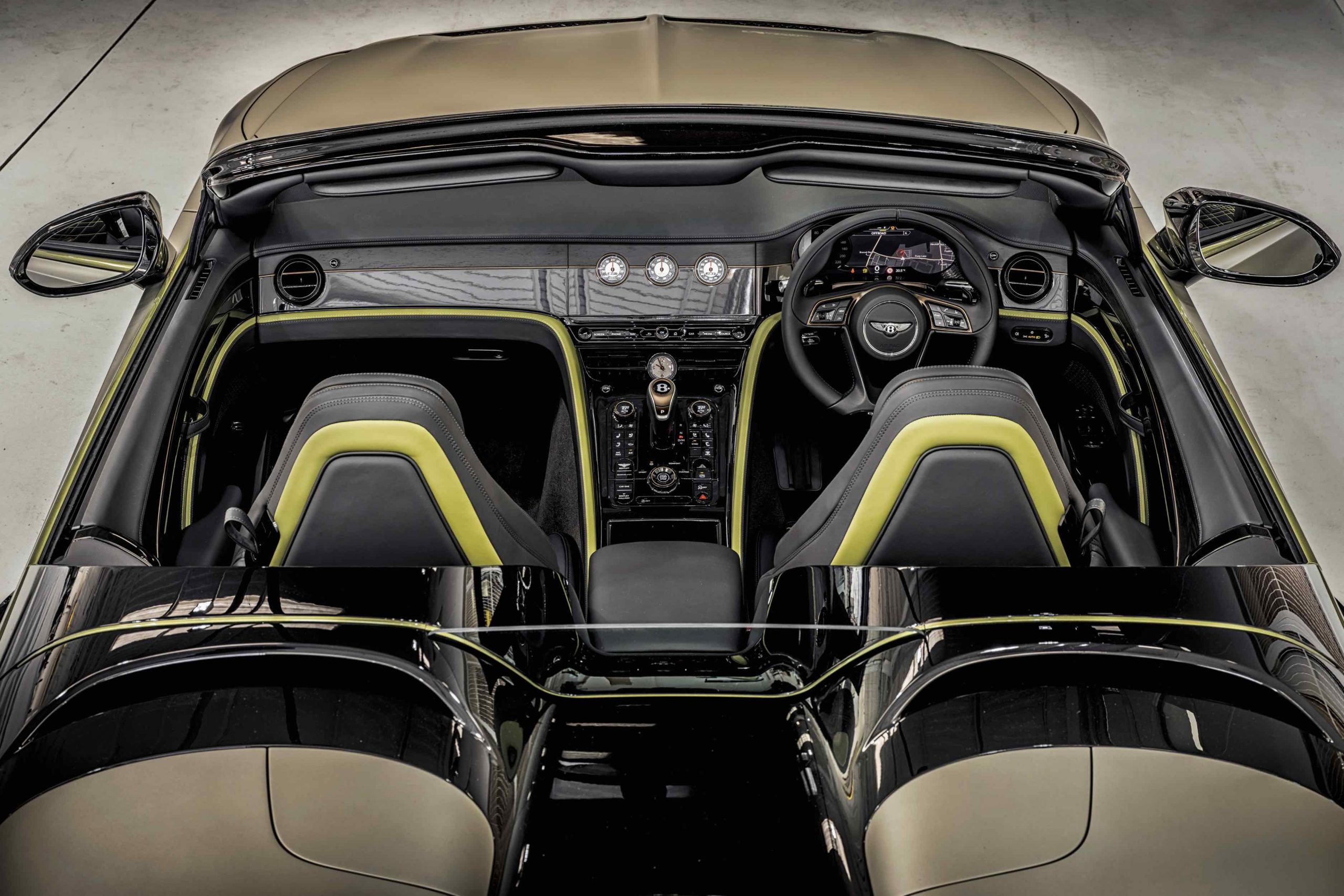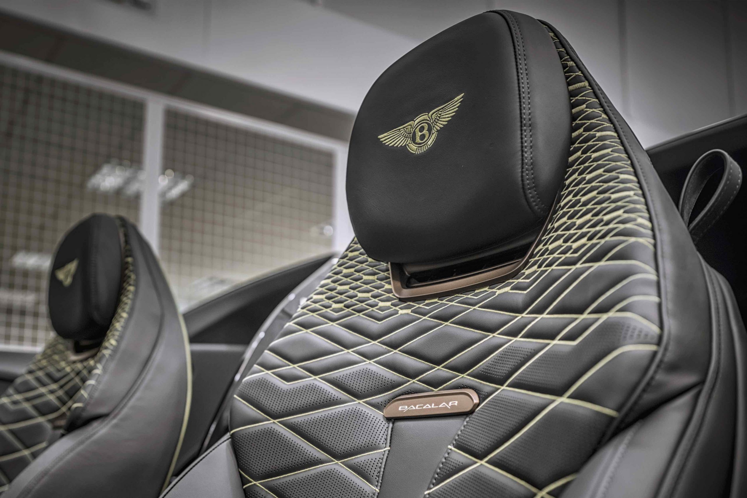 Primul exemplar Bentley Mulliner Bacalar are caroseria din fibră de carbon vopsită în nuanța satinată Silver Atom, folosește jante de 22 inch și accente în nuanța Moss Green. Exemplarele bespoke create de Mulliner pot fi configurate până la cel mai mic detaliu de către viitorul client.