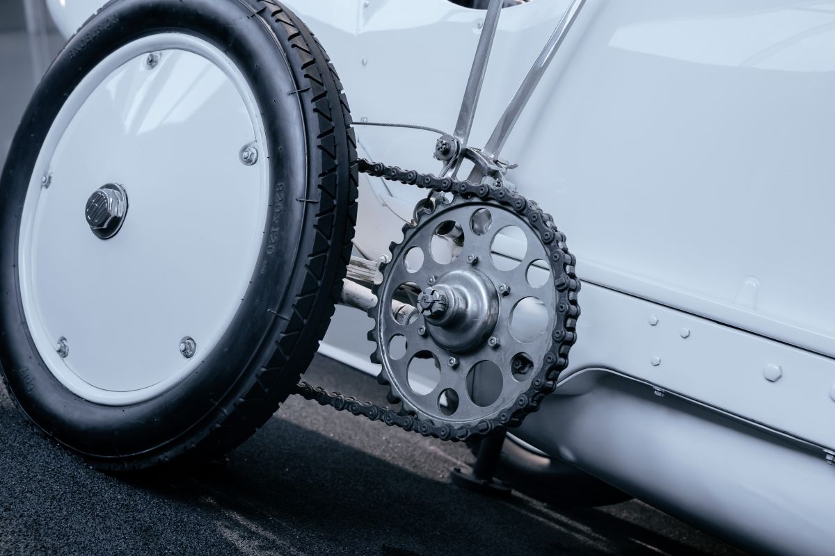 Patru țevi de eșapament de diametru mare ieșeau din capotă, sugerând o putere amplă. Amortizor de eșapament? Nici vorbă, rapidul „Blitzen-Benz“ era zgomotos cât cuprinde. Motorul era pornit cu ajutorul unei manivele din partea frontală a vehiculului, iar roți dințate mari și lanțuri puternice transmiteau puterea către roțile din spate.