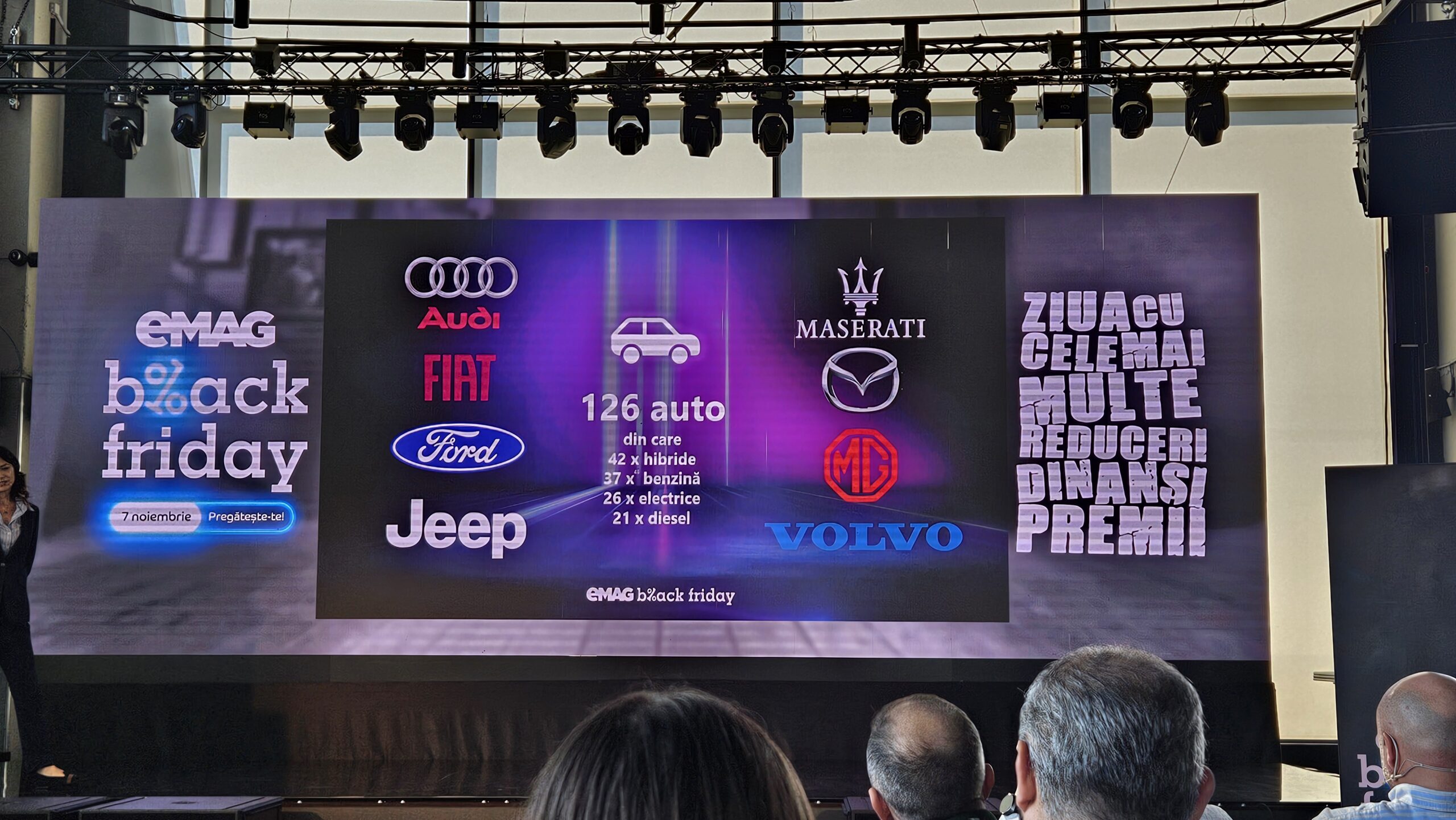 Pe 7 noiembrie 2025, eMAG organizează cea de-a 15-a ediție a celui mai mare eveniment de shopping al anului, Black Friday, promițând peste 1,5 milioane de oferte la cel mai bun preț din an. Printre atracțiile principale ale ediției din acest an se află oferta de autoturisme, alături de o gamă record de produse din toate categoriile, soluții flexibile de plată și premii în valoare totală de peste 2 milioane de lei.