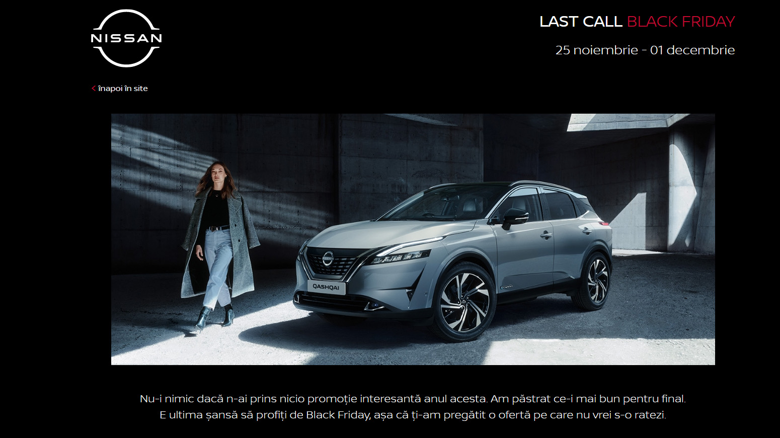Nissan dă astăzi startul promoţiei Black Friday Last Call pentru ca tu să te bucuri de toate călătoriile din această iarnă! Iată cum arată Black Friday la Nissan!