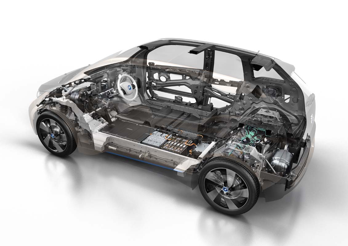 BMW a redresat problema prin folosirea unui șasiu ultra ușor grație unui mariaj inovator între CFRP (fibră de carbon ranforsată cu plastic) și aluminiu. CFRP-ul a fost pentru primă oară folosit de BMW în gama M pentru a înlocui plafonul din oțel cu scopul de a scădea greutatea și a coborâ centrul de greutate. În cazul lui i3 el joacă un rol mult mai aproape de potențialul tehnologic al materialului, în timp ce aluminiul scade greutatea în zone în care CFRP-ul nu era fezabil. La final, noul i3 cântărește doar 1.200 kg, comparabil cu un model de clasă mică diesel.