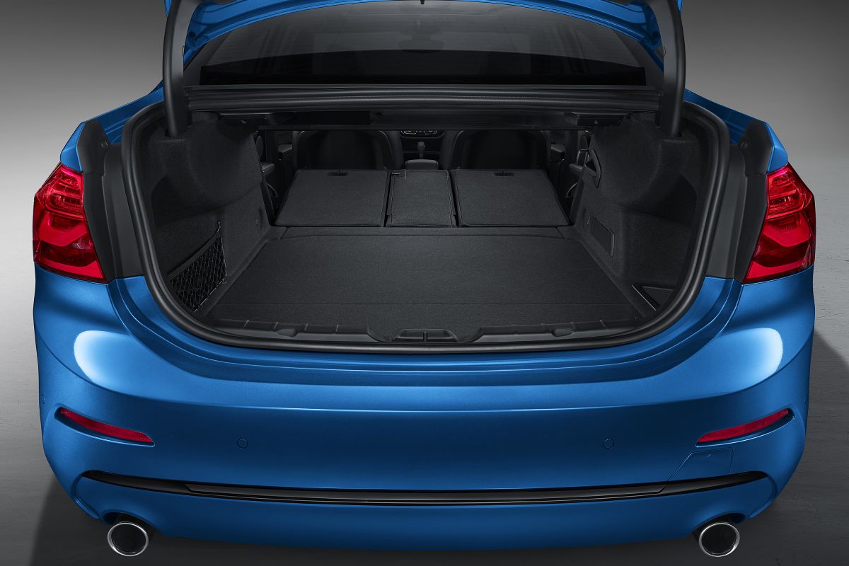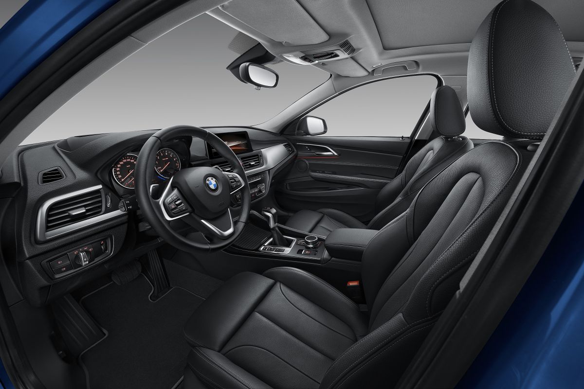 Dimensiunile exterioare sunt tipice clasei compacte. Noul BMW Seria 1 Sedan afișează o lungime de 4.456 mm, o lățime de 1.803 mm și o înălțime de 1.446 mm. Interiorul diferă de cel al Seriei 2 Active Tourer în zona gurilor de ventilație centrale, display-ul color flotant de 8,8 inch al sistemului iDrive fiind, în schimb, identic.