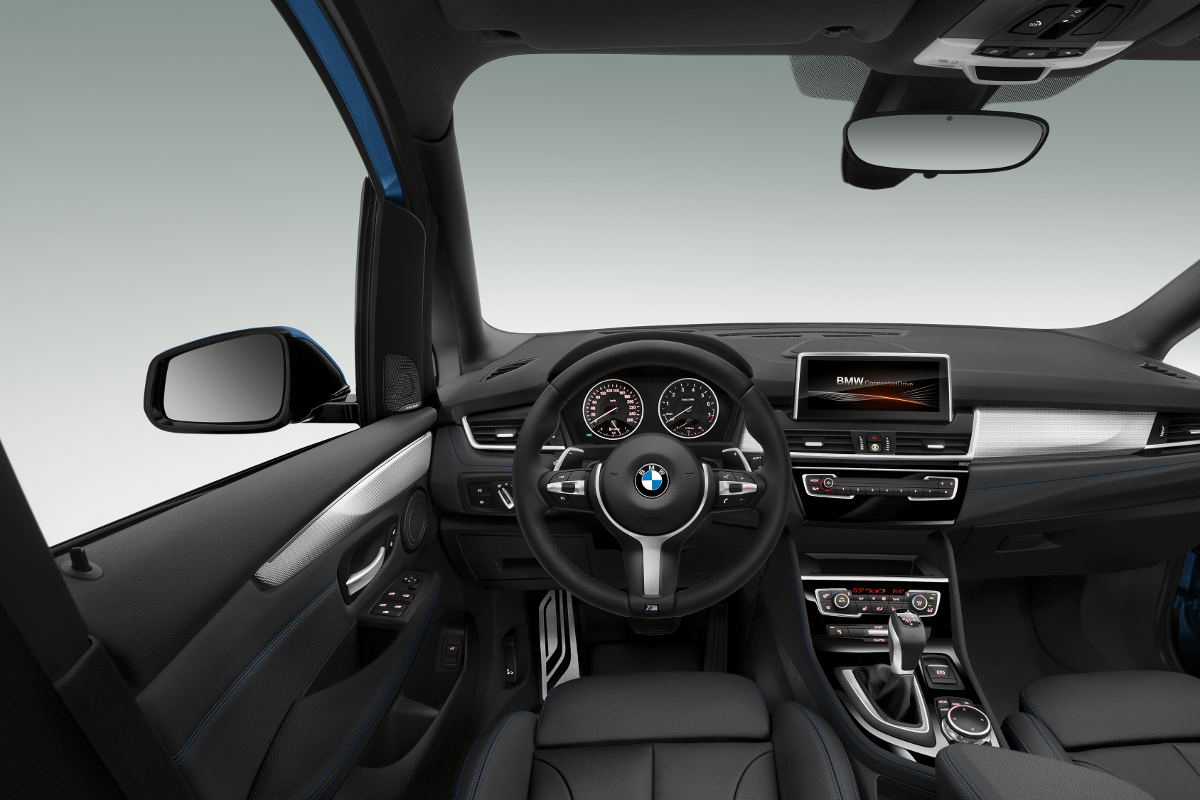 BMW oferă aer condiționat automat cu reglare pe două zone, Park Distance Control și Cruise Control cu funcție de frânare, bancheta culisantă, jante din aliaj de 16 inci, iDrive, Bluetooth, senzor de ploaie, Collision Warning și Brake City, încă de la echiparea de bază. Linia Sport aduce în plus jante de 17 inci și scaune sport.
