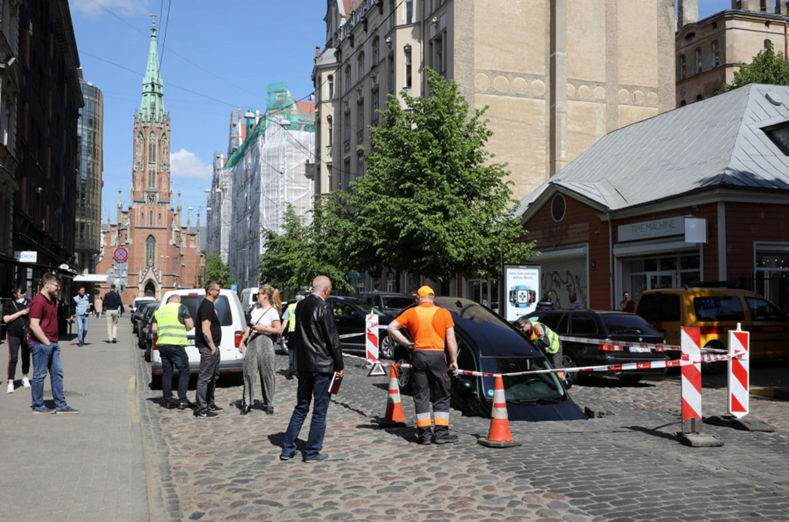 Un incident neobișnuit a avut loc în capitala Letoniei, Riga. Un automobil BMW Seria 3 a fost înghițit de o gaură căscată pe una din străzile principale.