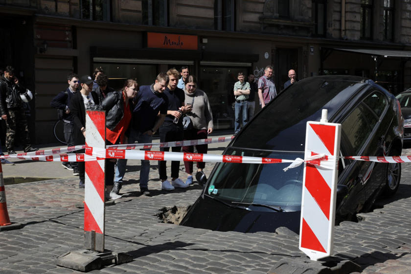 Acest gen de evenimente apare de obicei peste ocean, unde diverse automobile au fost înghițite de găuri apărute în pământ. De data aceasta, un BMW Seria 3 a fost victima unei găuri apărute pe un bulevard din Riga, Letonia.