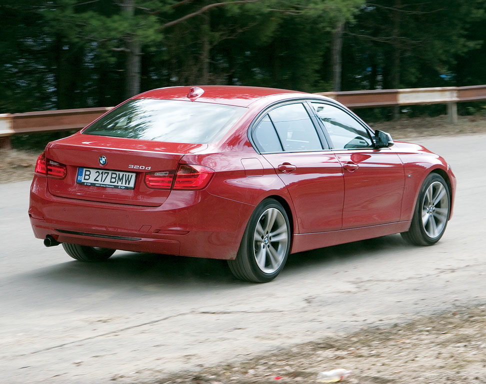 Aspectul agresiv te îndeamnă la un stil sportiv de conducere, lucru susţinut şi de partea tehnică. Motorul de 2,0 litri turbodiesel ce echipează 320d este fără îndoială cel mai performant din acest test. Oferă multă putere încă de la turaţii joase şi urcă în ture fără efort atunci când îi ceri. Doar cârcotaşii ar putea spune că este ceva mai zgomotos decât ar trebui la relanti, mai ales atunci când este rece. În combinaţie cu transmisia automată cu 8 rapoarte automobilul accelerează fără efort, permiţând schimbarea instantanee a ritmului de conducere. În tot acest timp consumul de carburant rămâne scăzut, foarte apropiat de valorile date de constructor.
