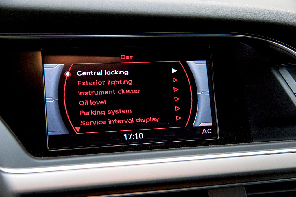 În interior povestea este asemănătoare, A4 avea deja un interior recunoscut pentru calitate și ergonomie așa că inginerii s-au concentrat pe detalii. Pentru amatorii de statistică coloana de direcție a fost redesenată, sistemul MMI Plus și Audi Drive Select au fost simplificate, iar lista de inserții și tapițerii este de două ori mai lungă ca înainte. Rezultatul este un interior reușit cu o tentă evidentă high-tech, ce se vede depășit la capitolul gadget-uri doar de BMW Seria 3, care, a se nota, a avut de partea sa o echipare ultrageneroasă.