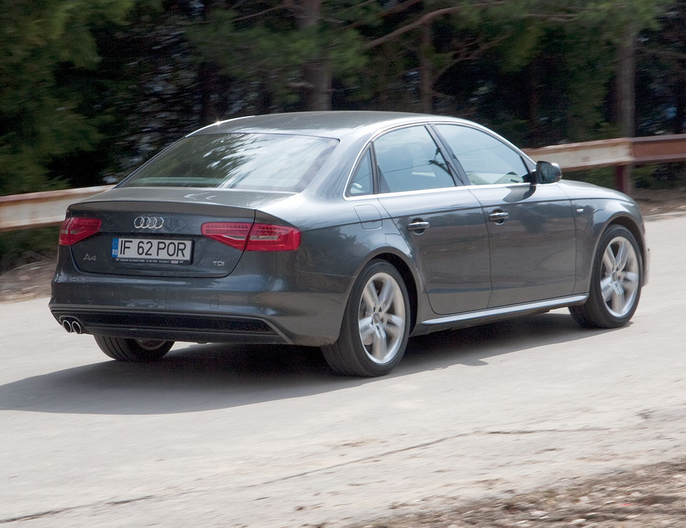 Alegerea motorizării nu va lua pe nimeni prin surprindere, asocierea 2.0 TDI fiind de departe cea mai populară în cazul posesorilor de A4. Versiunea de mijloc cu 143 CP (se poate opta și pentru 120 CP sau 177 CP) se remarcă în principal prin silențiozitate și economie, la ultimul capitol singurul concurent ce îi face față fiind noul Seria 3. Drept exemplu, pe un parcurs de 500 km/h consumul mediu a fost de 6 l/100 km în condițiile în care nu s-a urmărit cu precădere obținerea unui record de consum. Dacă nu aș fi fost presat de timp și de sedința foto un 5 l/100 km ar fi fost ușor de atins.