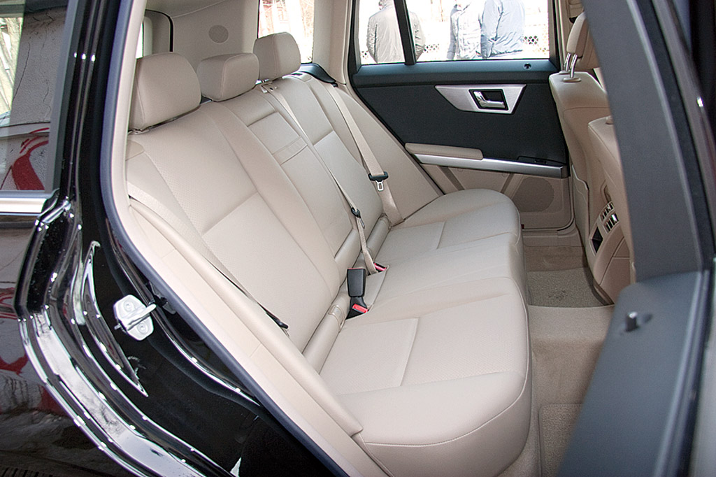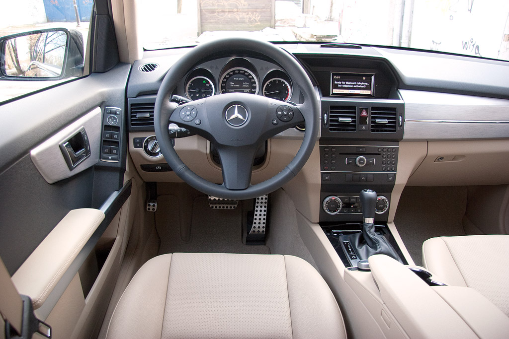 Când vine vorba de interior, GLK stabileşte standarde greu de atins chiar şi de noul X3, model lansat la sfârşit de 2010. Totul este unde trebuie să fie, iar asamblarea este făcută cu precizie germană. Consola scurtă, cu linii drepte, dă senzaţia de securitate şi putere la volan. Mi-a plăcut modul cum îţi poţi ajusta poziţia la volan, plecând de la una de Clasa C, până la vizibiliatea oferită de un ML. Spaţiul la nivelul capului este mai mult decât suficient, însă pierde puncte din cauza spaţiului limitat pe orizontală. Scaunele sunt orientate către confort şi oferă o susţinere laterală în limita clasei.