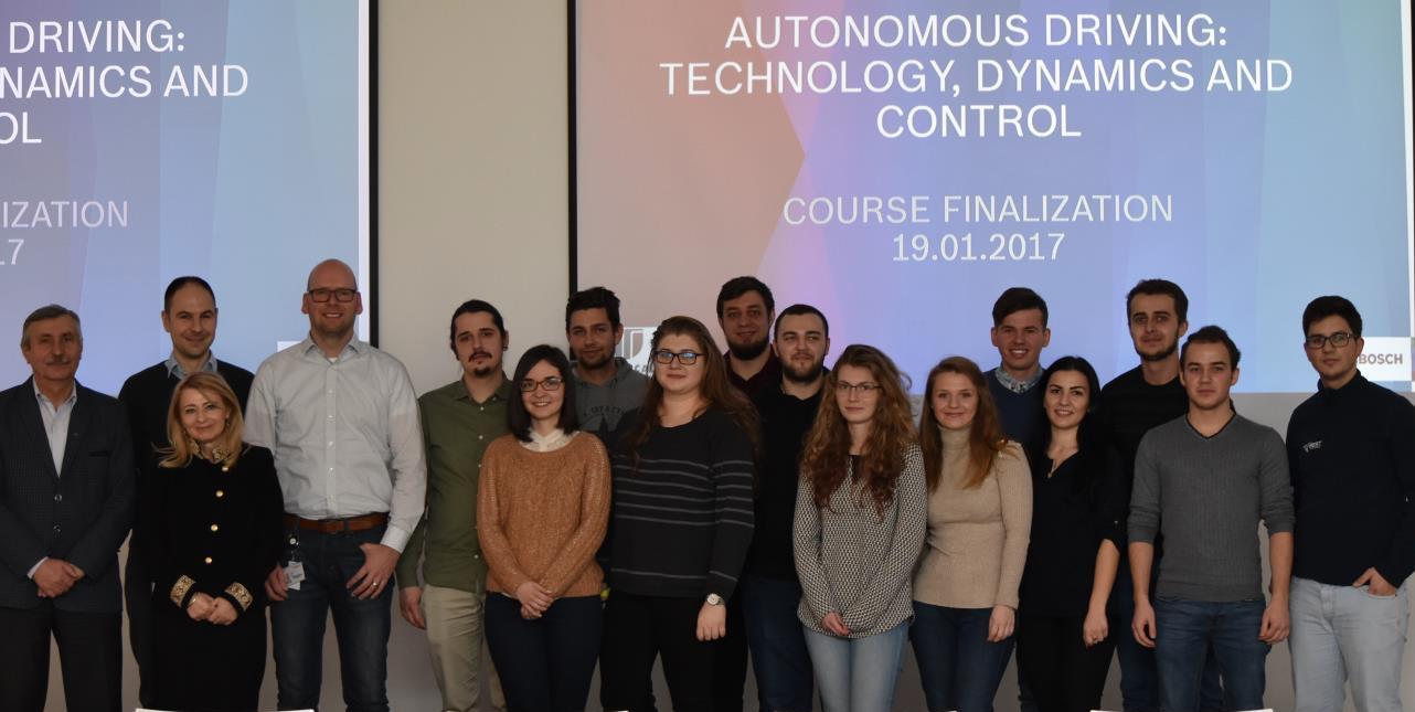 Centrul de Inginerie Bosch din Cluj-Napoca a sărbătorit, la finalul lunii ianuarie, încheierea primei ediţii a cursului ”Tehnologia, dinamica şi controlul maşinilor autonome”.