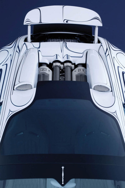 Veyron L’Or Blanc (aur alb in franceza) a fost realizat in parteneriat cu Königliche Porzellan-Manufaktur Berlin si va fi prezentat in premiera la Berlin. Vorbim despre versiunea decapotabila lui Veyron, intitulata Gran Sport ce a primit un tratament neobisnuit pentru un supercar: atat exteriorul cat si unele zone din interior au fost placate cu potelan de cea mai buna calitate.
