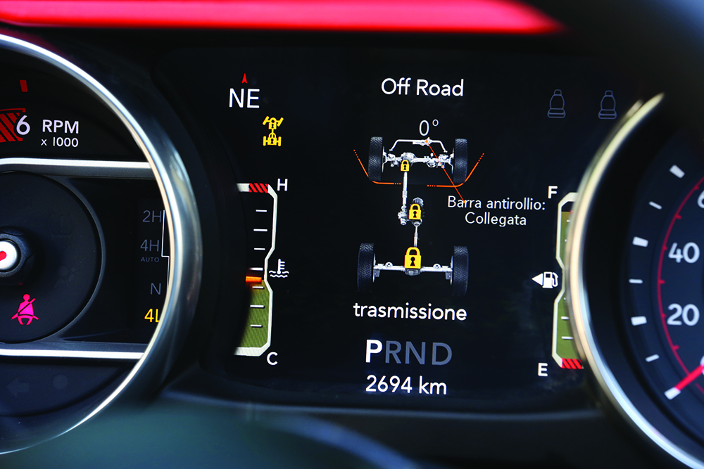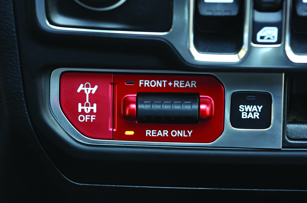 Sistemul mai evoluat, Rock-Trac, are un reductor cu demultiplicare 4:1 pentru benzină și 3,73 pentru diesel, punți Dana 44 mai groase, cu raport final de 4,1:1 și diferențiale blocabile față-spate Tru-Lok. În premieră, bara stabilizatoare față poate fi deconectată, pentru a mări cursa suspensiei și, implicit, capacitățile off-road. Toate versiunile beneficiază de șasiu separat, un simbol al indestructibilității proverbiale a modelului.