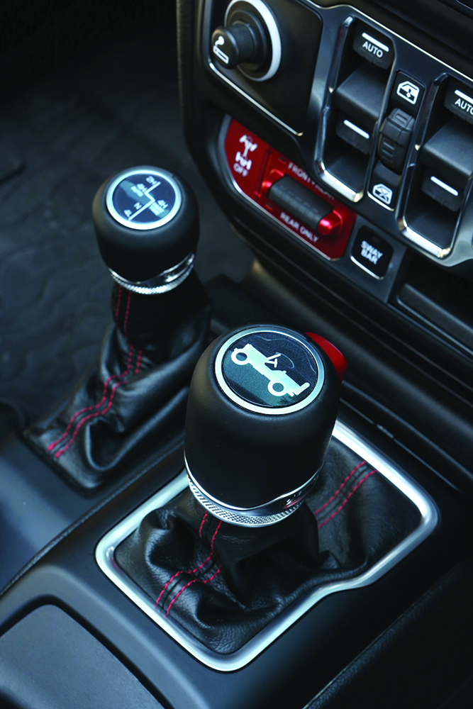 Cei peste 75 de ani de dezvoltare continuă a tracțiunii integrale se oglindesc în cele două sisteme 4×4 disponibile pe noul Wrangler: Command-Trac (pe Sport și Sahara) și Rock-Trac (oferit standard pe cea mai capabilă versiune, Rubicon). Ambele sunt dotate standard cu reductor full-time cu două rapoarte, numit Selec-Trac.