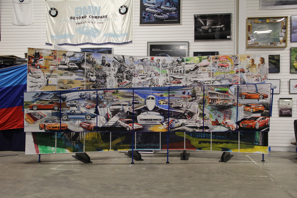Lucrarea de artă cuprinde 25 de picturi mari, care funcţionează ca un story board, ca o scenă, cu eroi şi momente legendare din istoria modelului. 18 picturi sunt reunite într-un perete de fundal curbat, în timp ce şapte picturi, poziţionate în faţă, sunt combinate într-o suprafaţă plană.