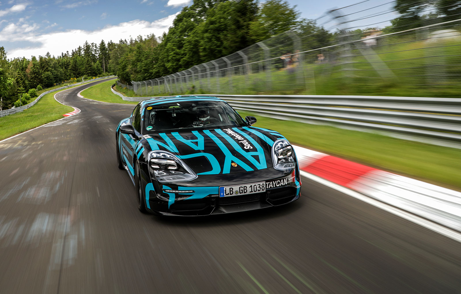 La volanul prototipului Porsche Taycan s-a aflat pilotul Lars Kern. Abilitățile sale la volan, alături de cele două motoare electrice, de șasiul Porsche 4D-Chassis Control, sistemului de roți directoare spate și anvelopelor standard de 21 de inci, timpul obținut de Taycan este comparabil cu acela reușit de Porsche 911 GT3.