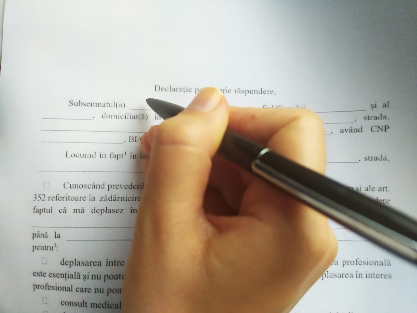 Model adeverință pe proprie răspundere