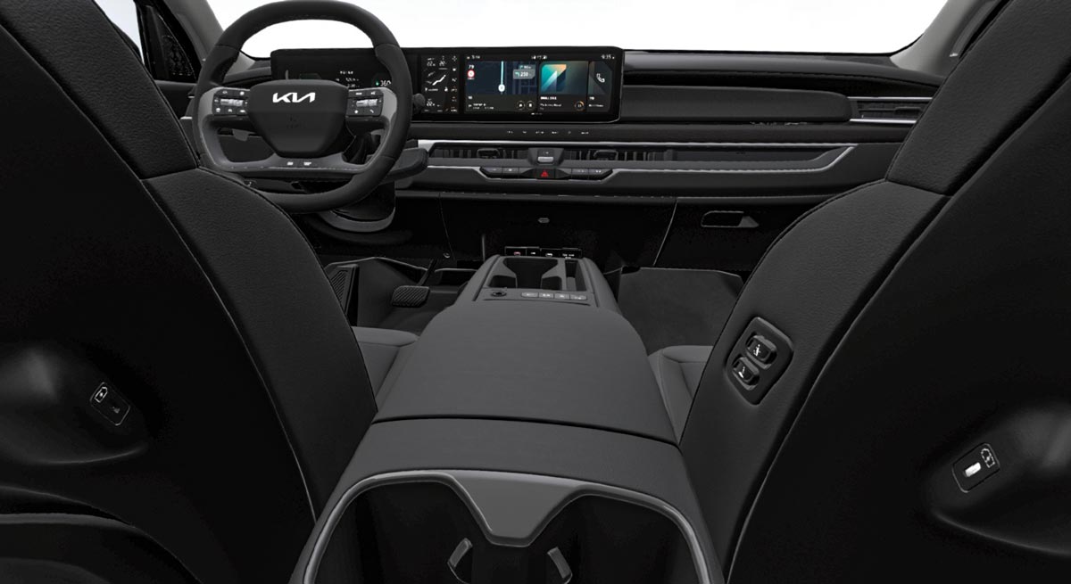 Peste 5 metri de mașină electrică! Ecologia întâlnește confortul într-un mod inaccesibil altor SUV-uri. Kia EV9 este o garsonieră pe roți, care vine utilată cvasicomplet încă din varianta standard. Bine, trebuie să-i dai singur o mână de vopsea pe exterior, dacă nu vrei să plătești extra, pentru că orice culoare (chiar și alb) costă în plus. În schimb, ai climatizare automată cu trei zone, șapte locuri și pompă de căldură ca dotări standard.