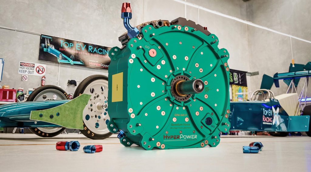 Iar acum, o companie australiană numită Hyperpower Technologies oferă un motor electric care dezvoltă nu mai puțin de 1.360 CP. Numit QFM 360 X acest motor a fost dezvoltat și testat cu ajutorul unei echipe de curse. Top EV Racing a montat nu unul ci patru motoare electrice QFM 360 X pe un dragster.