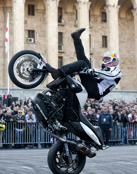 In urma cu cativa ani, Chris s-a urcat cu motocicleta sa, un BMW F 800 R, pana la etajul 22 al cladirii BMW Tower din Munchen, unde a inceput o etapa de freestyle direct pe acoperisul cladirii.