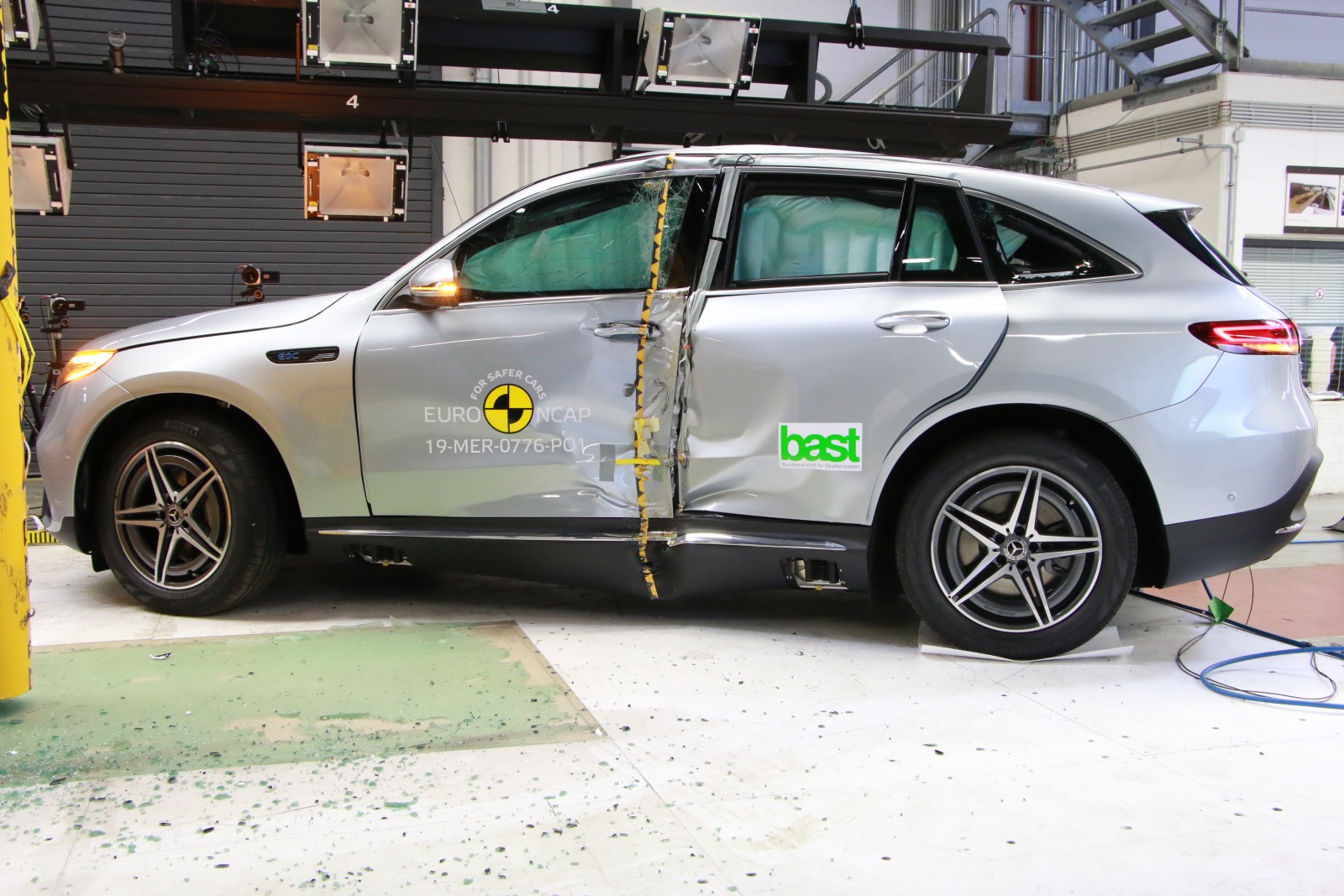 Primul SUV electric din gama Mercedes-Benz a fost și el trecut prin testele de siguranță și acesta s-a descurcat admirabil. Pe lângă cele cinci stele obținute, EQC a primit un scor de protecție adulți de 96% chiar dacă în urma inspecției post impact s-a constatat că una din balamalele portierei spate s-a rupt. Scorul pentru protecția copiilor este de 90%, iar cel pentru protecția pietonilor de 75%. Sistemele de asistență au primit un scor de 75%.